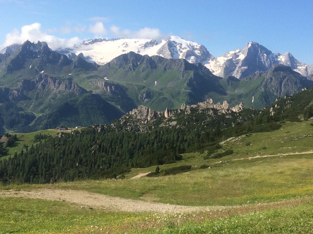 Zum Glück brachte uns der Freitag Morgen wieder einigermaßen stabiles und schönes Wetter, so dass wir unsere 75. Jubiläumstour zum Boeseekofel wiederholen konnten. Ein letztes Mal fuhren wir von Wolkenstein über das Grödner Joch runter nach Corvara 1.568 m. Dem armen Uwä gönnten wir bei dieser Fahrt den Logenplatz vorne rechts, um ihn vor seinem „Gebrechen“ zu schützen.