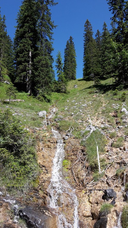 Nach dem etwas bewölkten, windigen gestrigen Tag, erwartete uns heute ein traumhaft schöner Morgen, den wir im wiederum im Mieminger Gebirge, auf der Niederen Munde verbringen wollten. Bei strahlendem Sonnenschein starteten wir mit der Ehrwalder Alm-Bahn, die uns zur gleichnamigen Alm 1.502 m brachte. Von dort aus ging es an der Pestkapelle vorbei ins Gaistal, dass sich ewig lange hinzog und uns an das Langenthal in Wolkenstein erinnerte. Leider verloren wir auf den ersten Kilometern auch noch an Höhe und als wir kurz hinter der Tillfussalm zur Niederen Munde abbogen, waren wir gerade noch auf 1.350 m Seehöhe und hatten damit noch 700 Höhenmeter vor uns. Der lange Anmarsch hatte schon Körner gekostet, schließlich mussten wir ständig Auf- und Ab wandern und als es dann endlich in Serpentinen durch Almen- und Latschengebiet steil aufwärts ging, war bei Charly die Luft raus und er drehte um. Der übliche Rest biss sich weiter durch und erreichte den kleinen Gipfel der Niederen Munde 2.059 m. Nach einer ausgiebigen Pause wanderten wir wieder auf dem Anstiegsweg zurück und suchten dabei unseren verlorenen Charly. Auf der Tillfussalm erhielten wir die Nachricht, dass er vor kurzem von hier aufgebrochen sei und so stiefelten wir hinterher, immer ein Blick auf die Uhr werfend, da wir die letzte Bahn bekommen wollten. Nach einem strammen Fußmarsch erreichten wir die Ehrwalder Alm-Bahn und fanden auch unseren Charly wieder, so dass wir gemeinsam hinabfahren konnten. Ein Blick auf Uwä`s Chronometer zeigte uns, dass wir mit der heutigen Tour den Tages-Rekord auf 20,50 KM hochgeschraubt hatten, kein Wunder, dass wir danach ziemlich groggy waren.